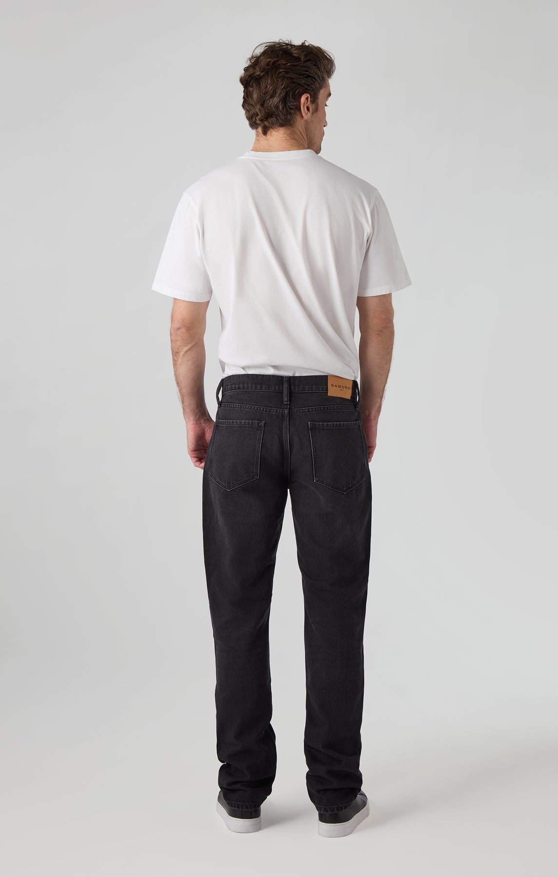 These Slim Straight - Used Black jeans feature a slim straight leg fit crafted from stretch denim, offering both style and comfort. The stretch fabric ensures ease of movement, classic look suitable for versatile wear. Ideal for those seeking a tailored yet comfortable fit.