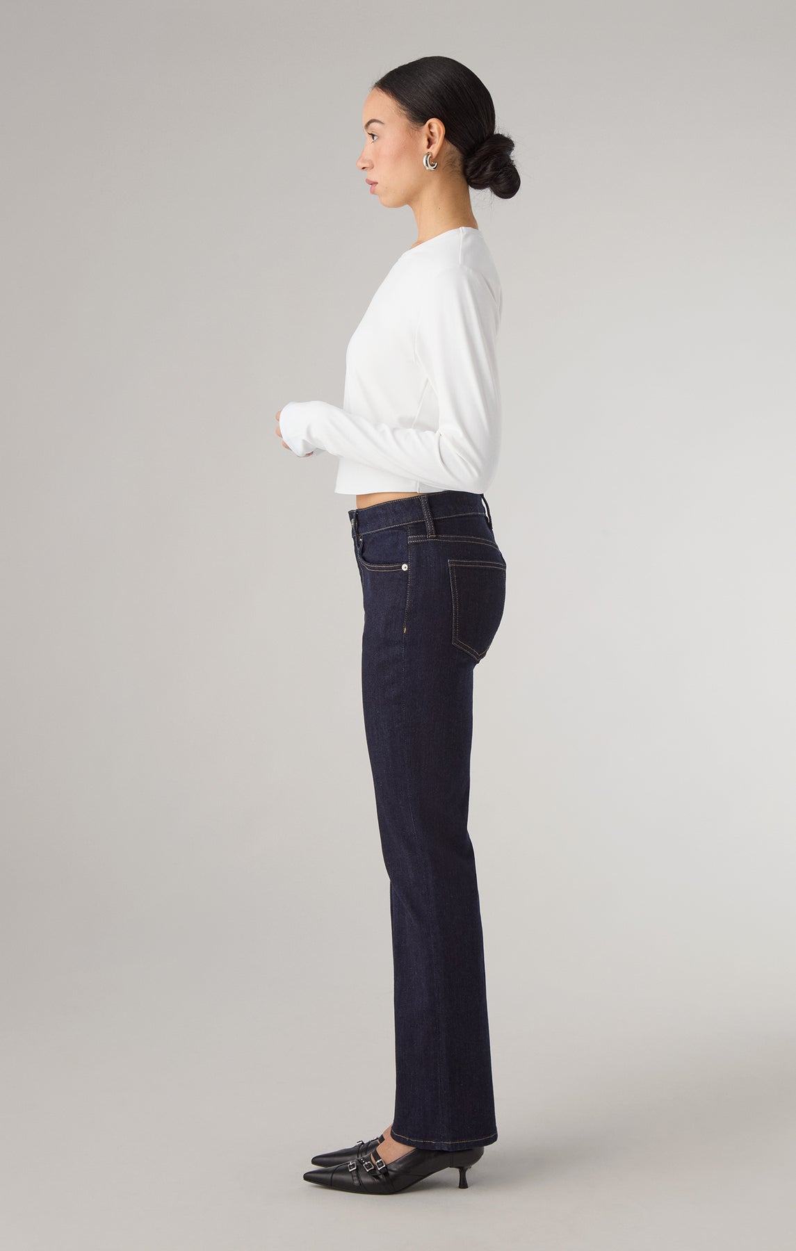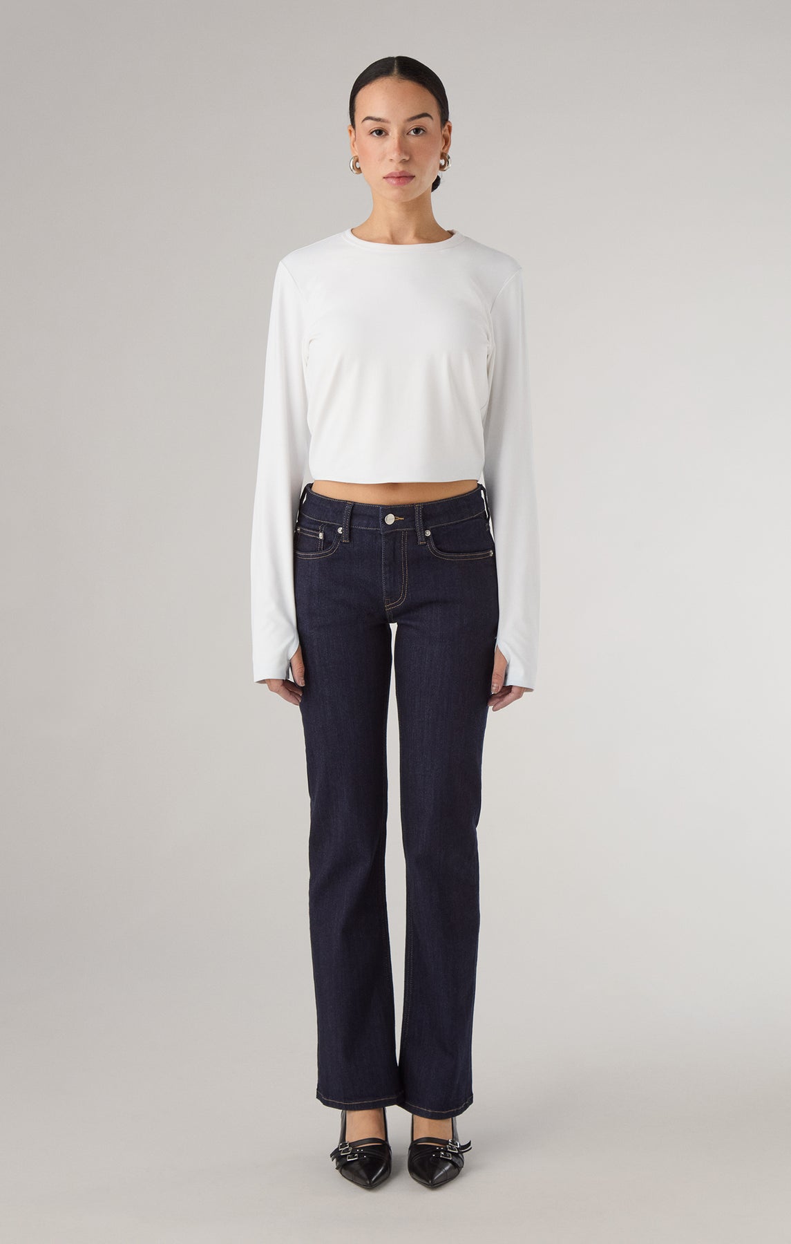 The Kate - Rinsed jeans combine a low waist and bootcut flare for a flattering fit. Made with stretchy fabric, they provide comfort and flexibility throughout the day. The vintage black wash delivers a classic, versatile look suitable for various occasions.